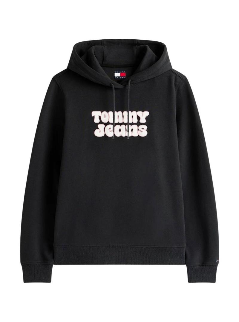 Moletom Tommy Jeans Logo preto para mulher.