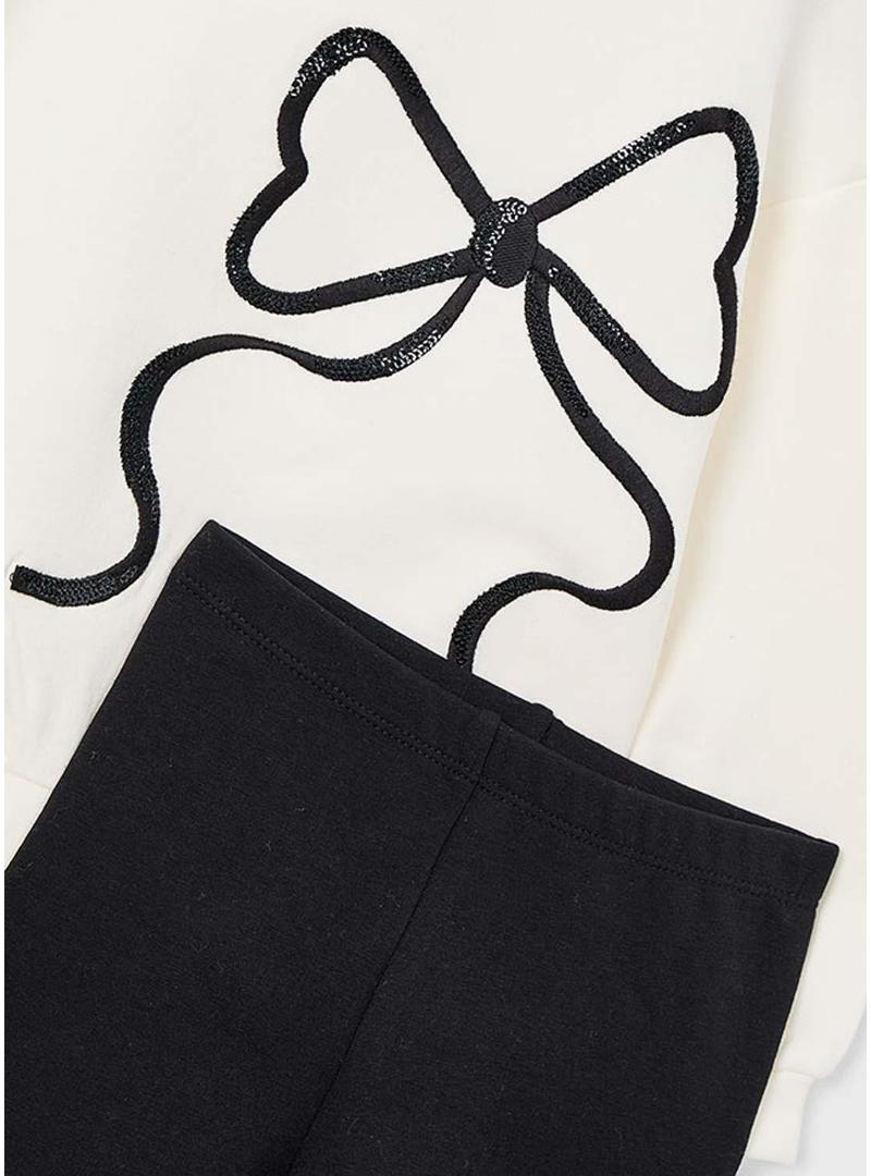 Conjunto de Mayoral. Moletom de manga comprida. Gola redonda. Detalhe de laço bordado e lantejoulas. Calça tipo legging com cintura elástica.