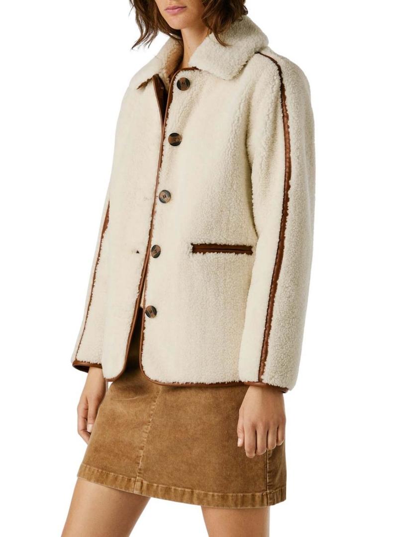 Jaqueta Pepe Jeans de pele de carneiro Truth bege para mulher