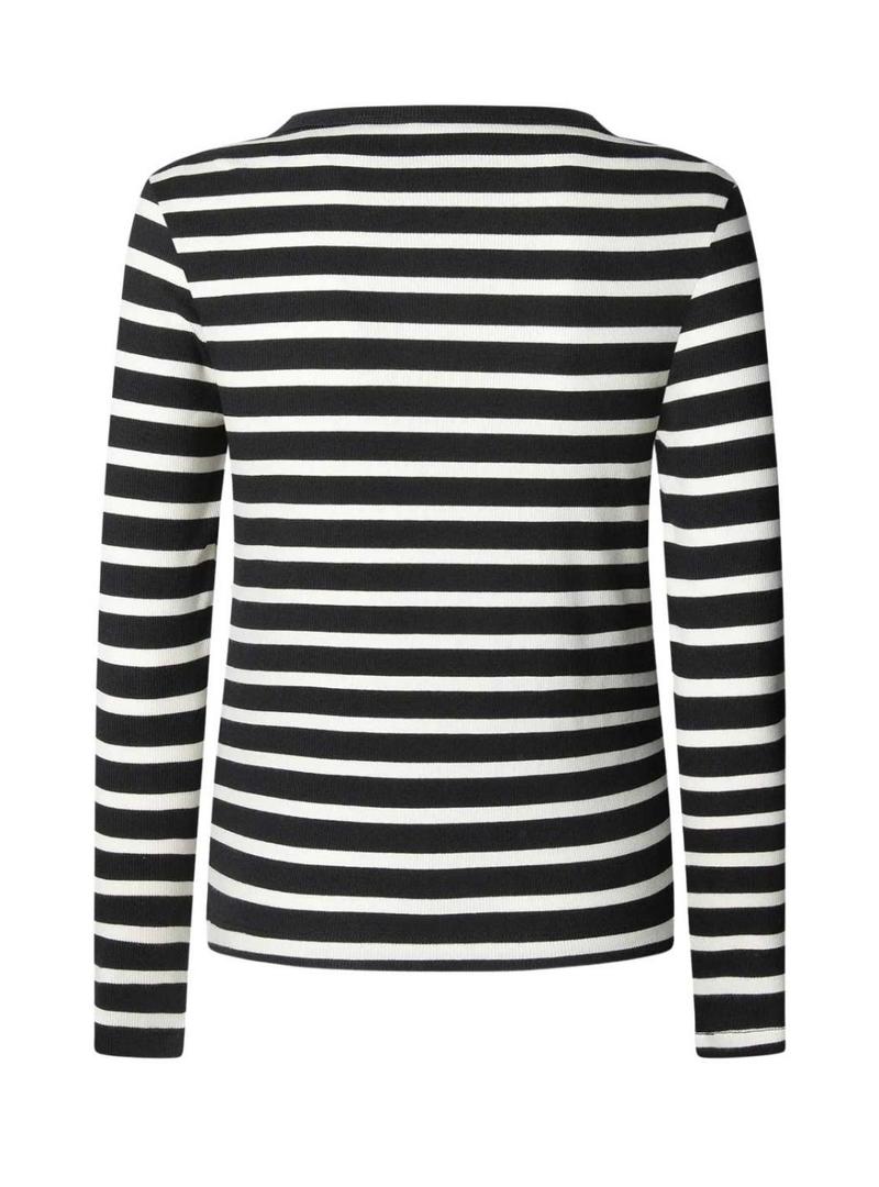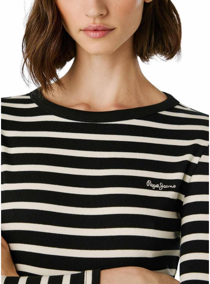 Camiseta Pepe Jeans Bani em listras de malha canelada preta para mulher.