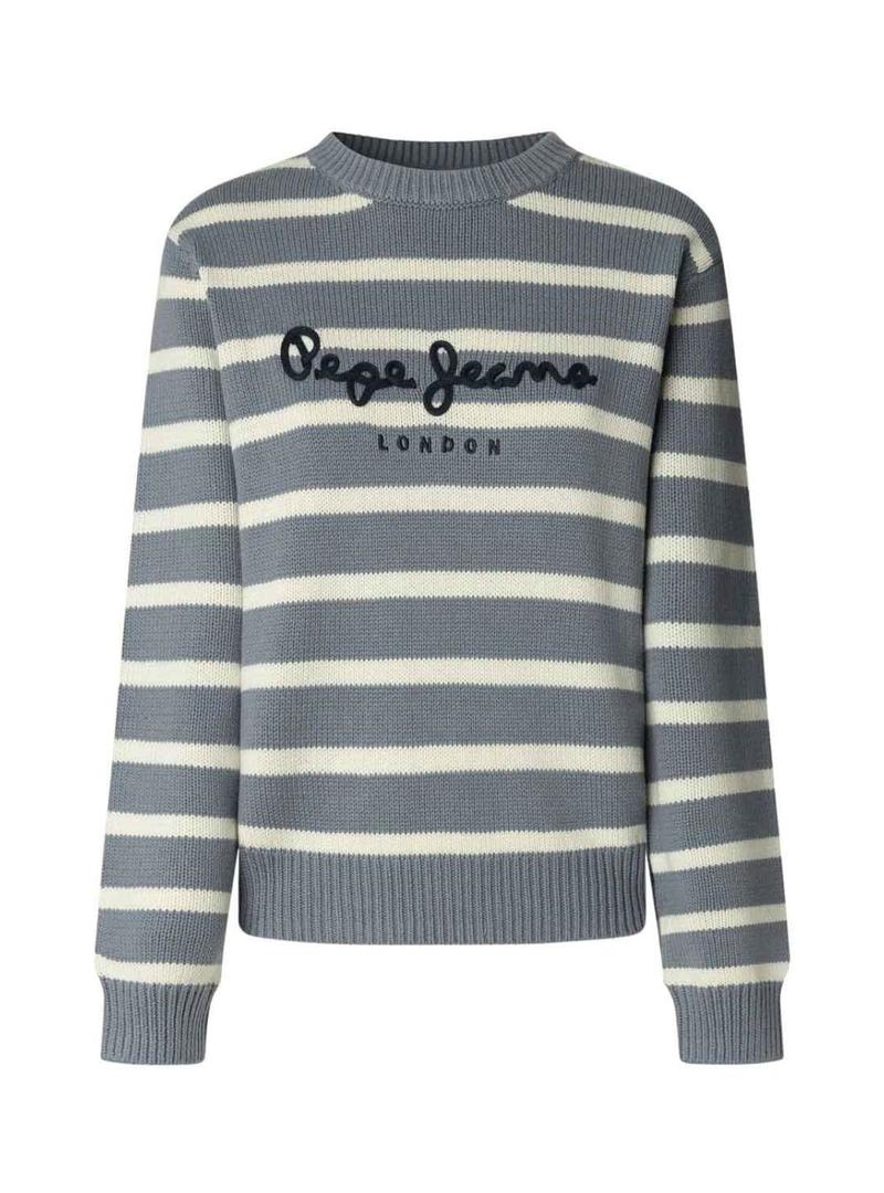 Camisola Pepe Jeans. Estampa de riscas. Gola redonda. Manga comprida. Acabamentos canelados. Logo Pepe Jeans bordado no peito. O modelo veste o tamanho S.