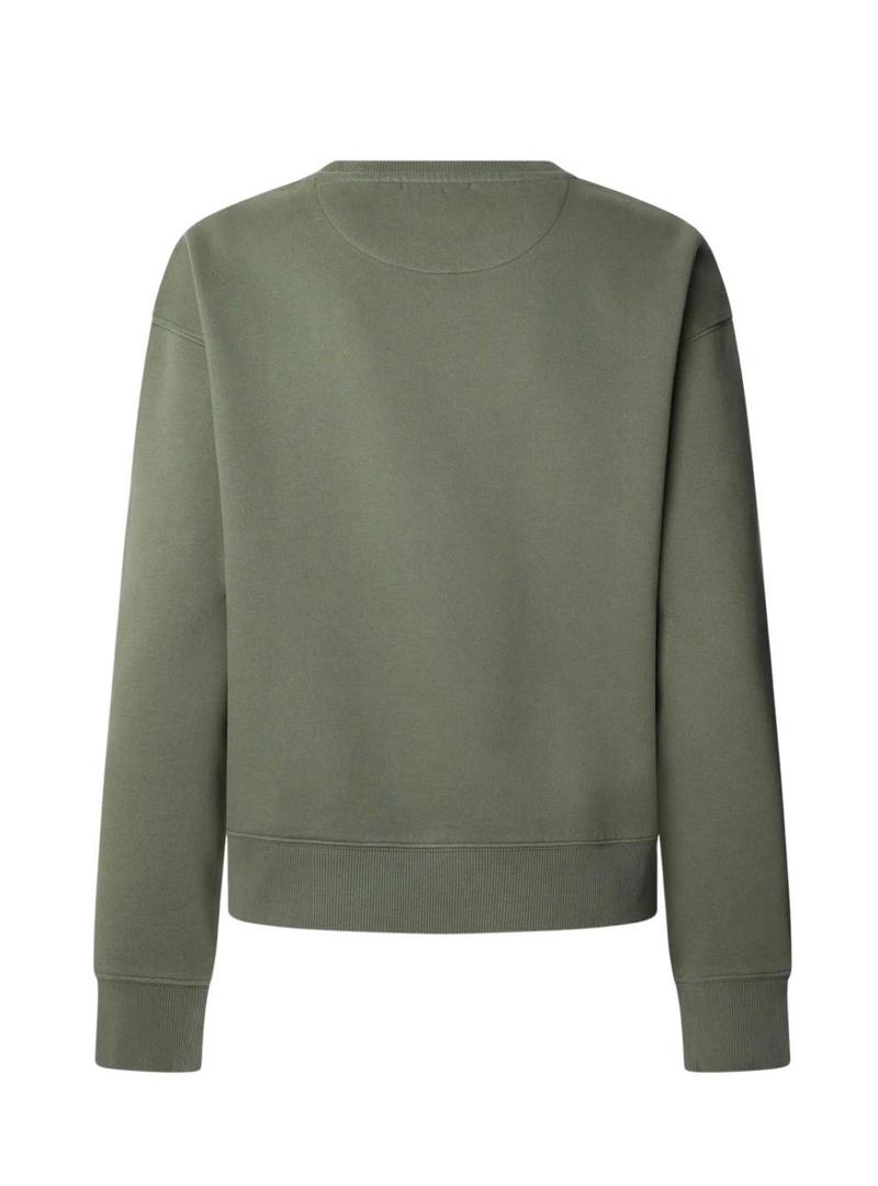 Moletom Pepe Jeans. Cor verde. Gola redonda canelada. Acabamentos canelados. Logotipo na frente com estampa de coração com asas.