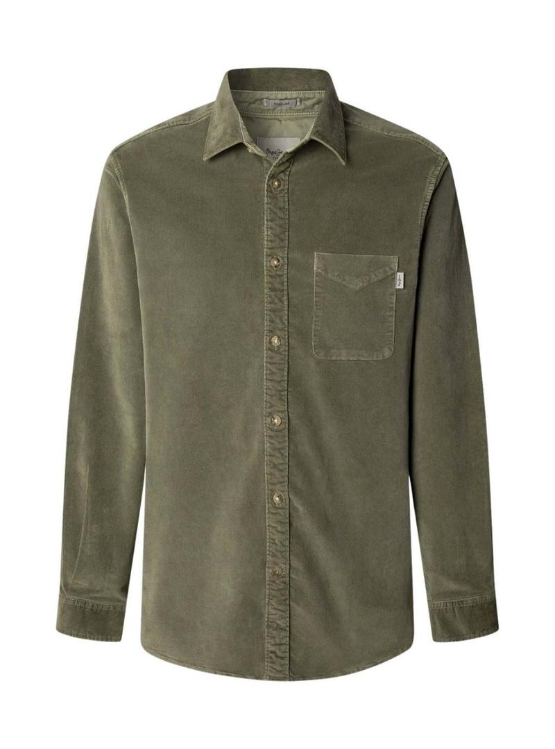 Camisa Pepe Jeans Clayton de veludo cotelê verde para homem.