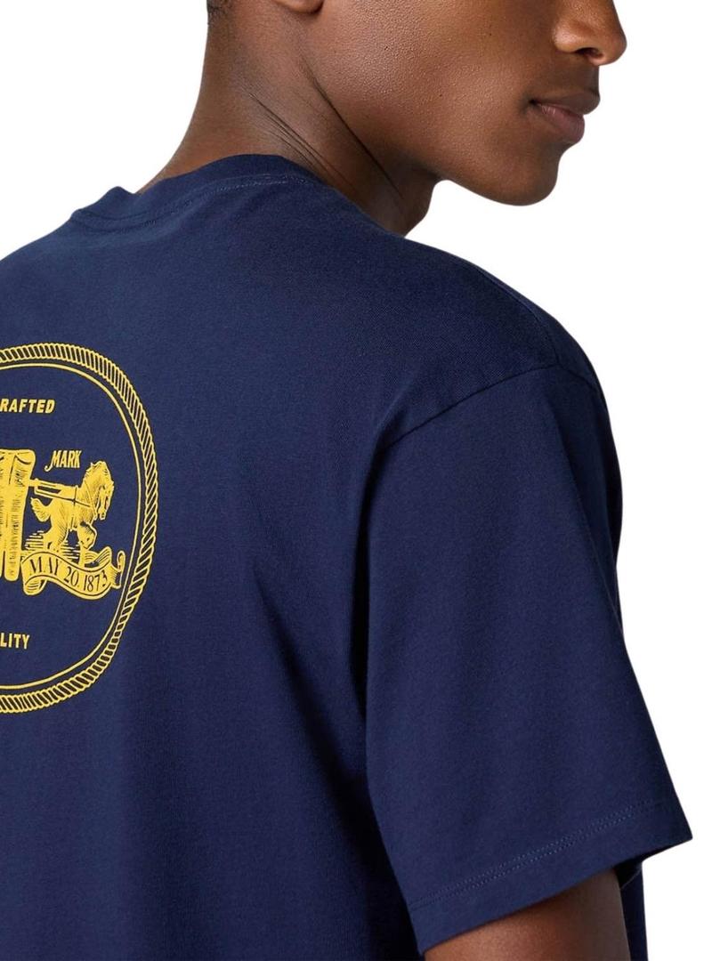 Camiseta Levi's. Cor azul marinho. Gola redonda. Manga curta. Logotipo no peito. Ajuste relaxado. Tecido macio. Logo no peito. Estampa gráfica nas costas. O modelo veste tamanho M.