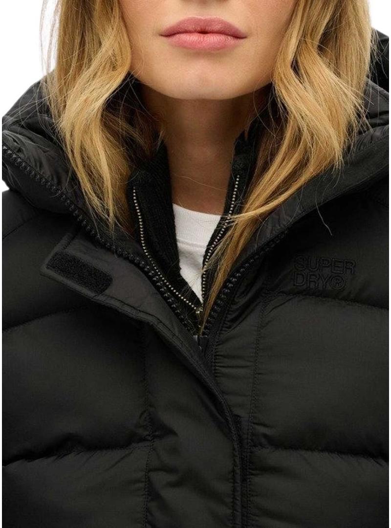 Jaqueta acolchoada Superdry Hooded Sports Puffer preta para mulher.