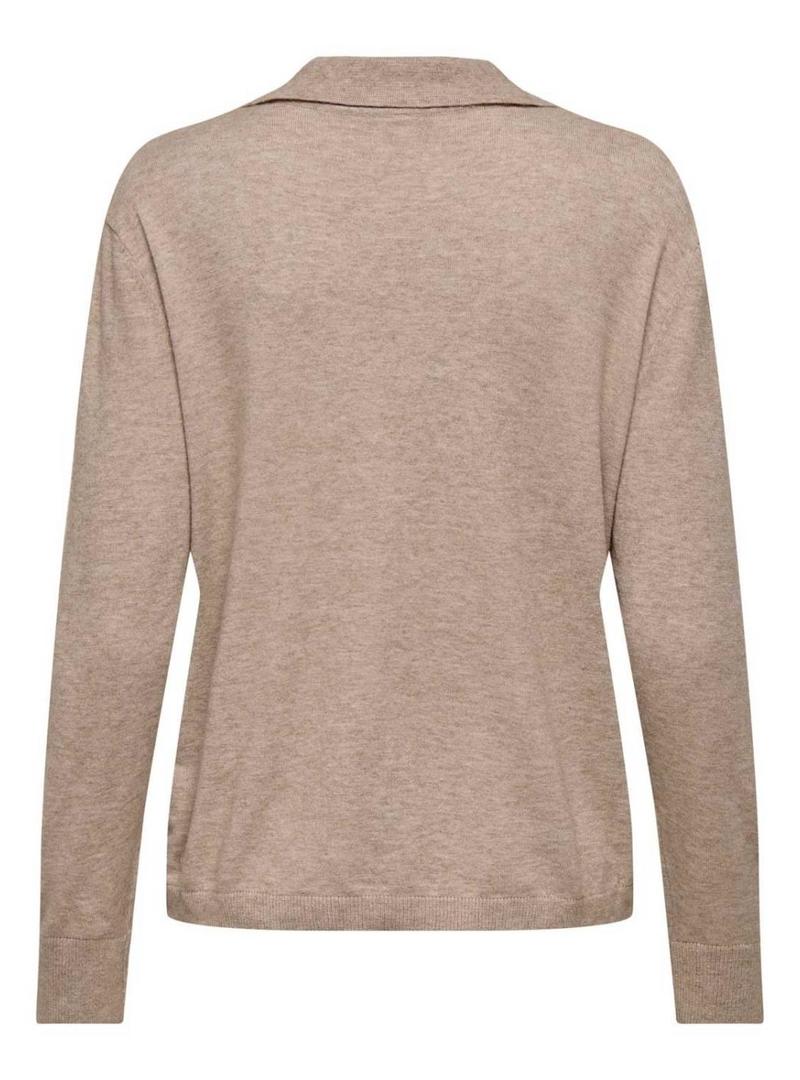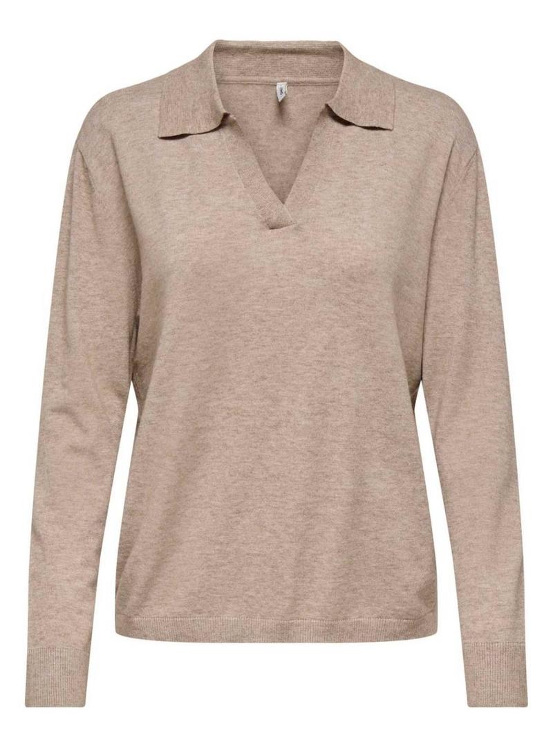 Jersey Only. Modelo Libi. Cor bege. Gola polo com decote em V. Extremidades caneladas. Manga comprida. Ajuste regular. Tecido leve. Estilo básico.