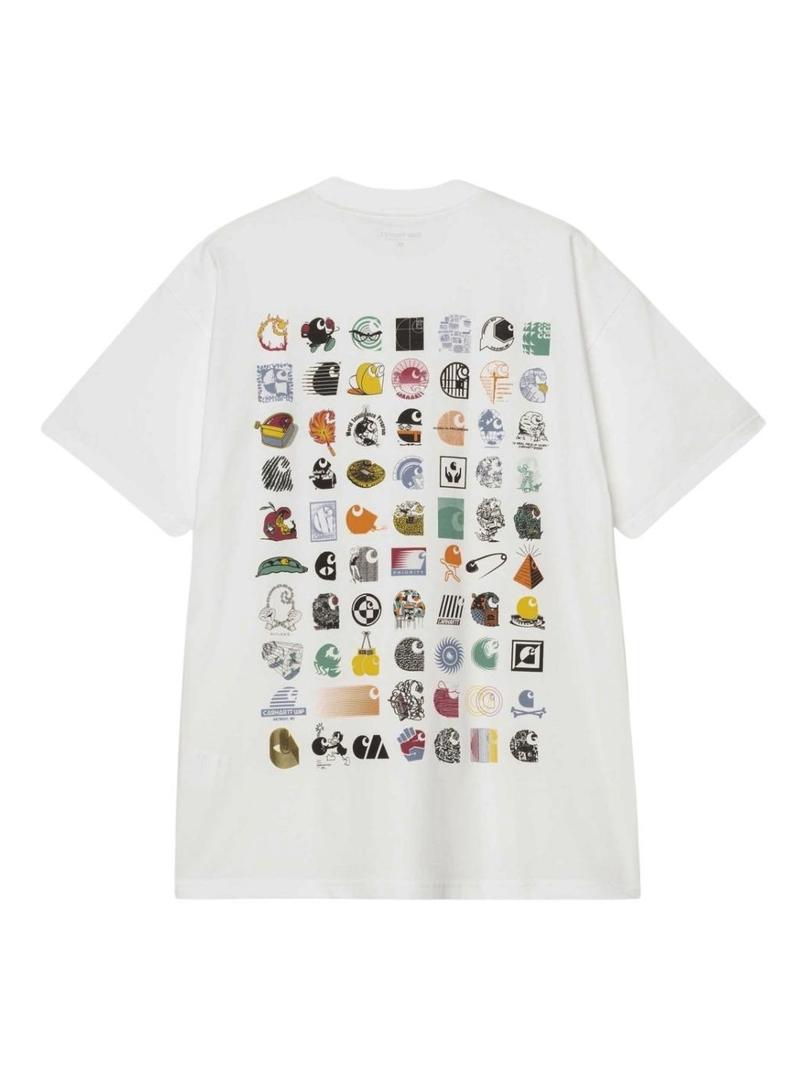 Camiseta Carhartt. Modelo Logo Archive. Cor branco. Manga curta. Gola redonda. Corte folgado. Estampados gráficos originais. Tecido em malha de algodão orgânico.