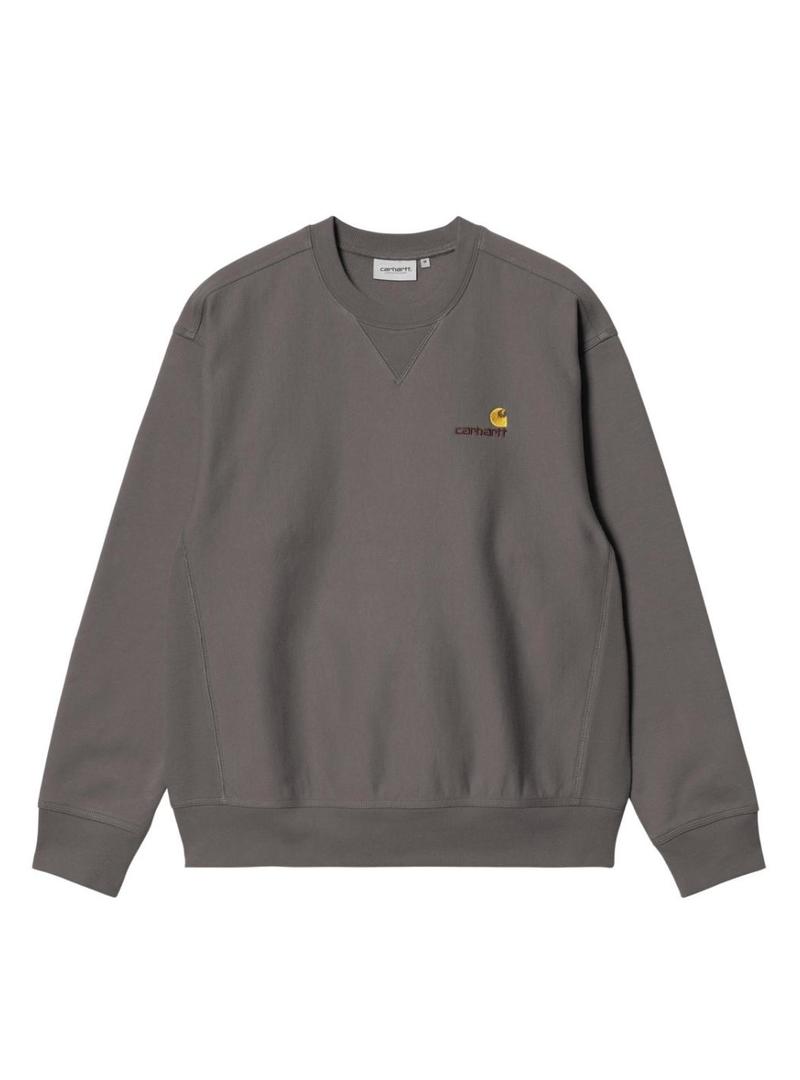 Moletom Carhartt American Script cinza para homem.