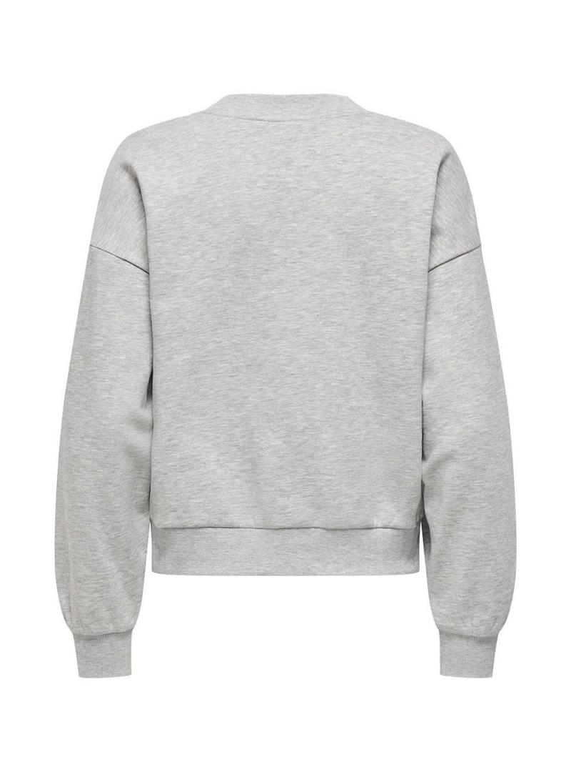 Moletom Only. Modelo Onjo. Cor cinza mesclado. Gola redonda. Manga comprida. Ombros ligeiramente caídos. Corte regular. Acabamentos canelados. Estampa no peito.