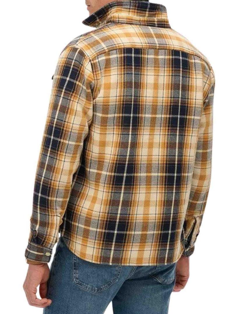 Camisa Superdry Merchant Heavy Checked flanela amarela para homem.