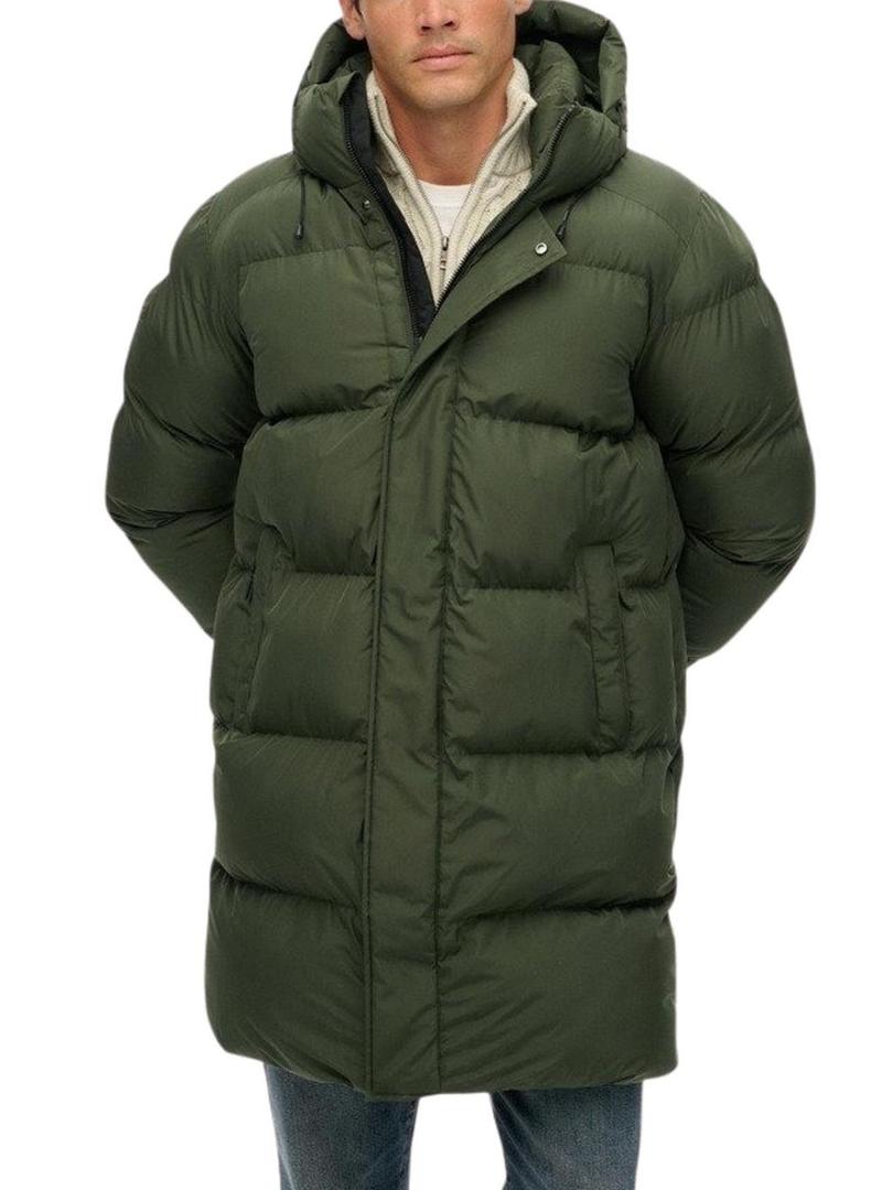 Jaqueta Superdry com capuz acolchoada verde para homem.