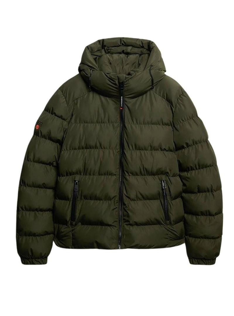 Casaco Superdry com capuz e acolchoado verde para homem.