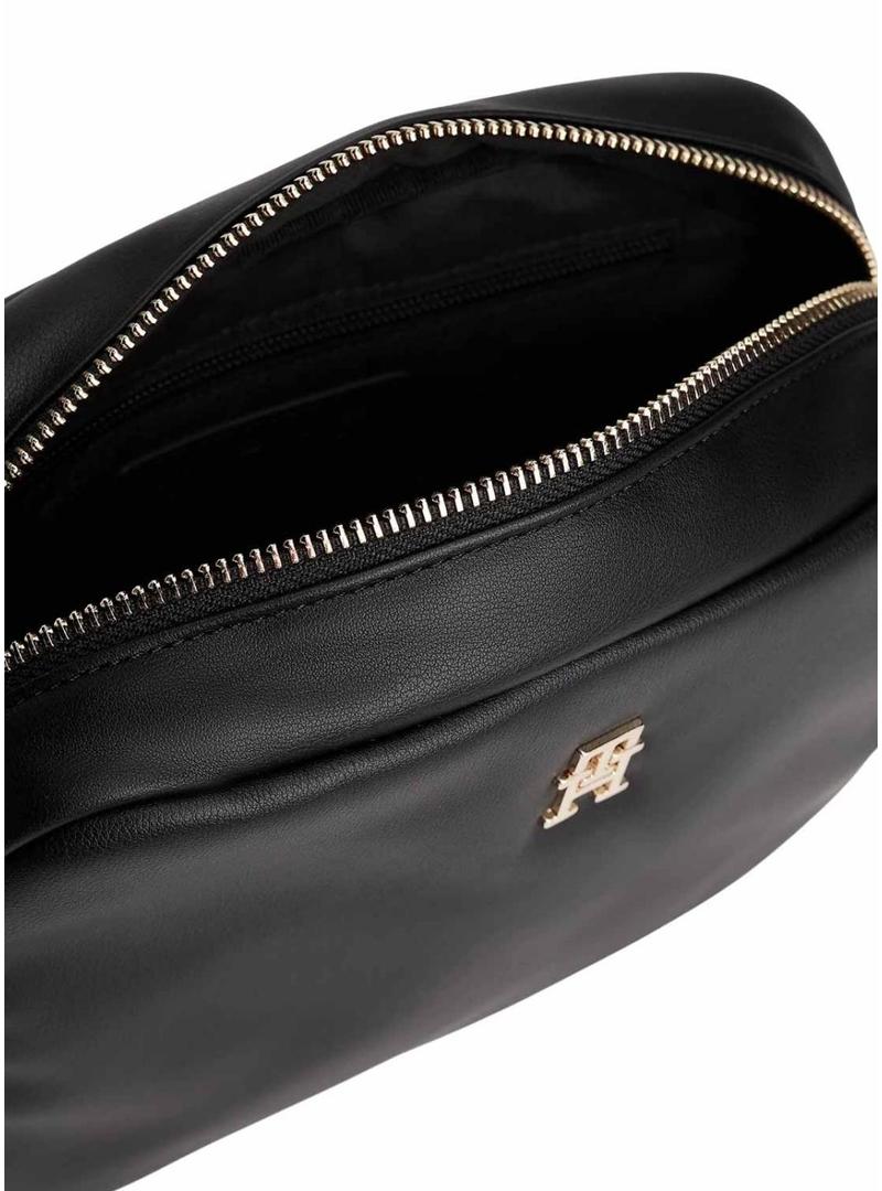 Bolsa Tommy Hilfiger. Modelo Popette Soft Camera. Cor preta. Design arredondado e acabamento liso, com detalhes metalizados. Fecho de correr e alça de ombro removível tecida. Compartimento principal com bolso interior com fecho de correr. Decorado com o monograma TH na frente e detalhes característicos da Tommy Hilfiger. Medidas: 21,5 x 6,5 x 15 cm. Capacidade: 2 L.