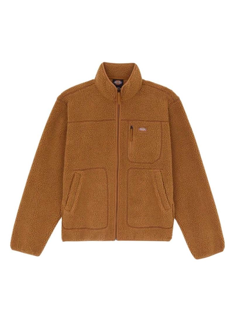 Forro Polar Dickies. Modelo Mount Hope. Cor caramelo. Fecho frontal com zíper. Gola alta. Ombros caídos. Etiqueta bordada no peito. Dois bolsos frontais. Um bolso no peito com zíper. Punhos e barras elásticas. Formato regular.