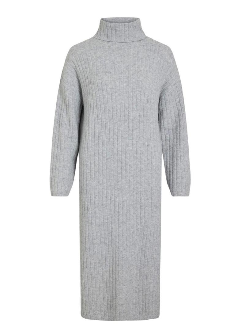 Vestido Vila Vilassia em malha com gola alta cinza para mulher.