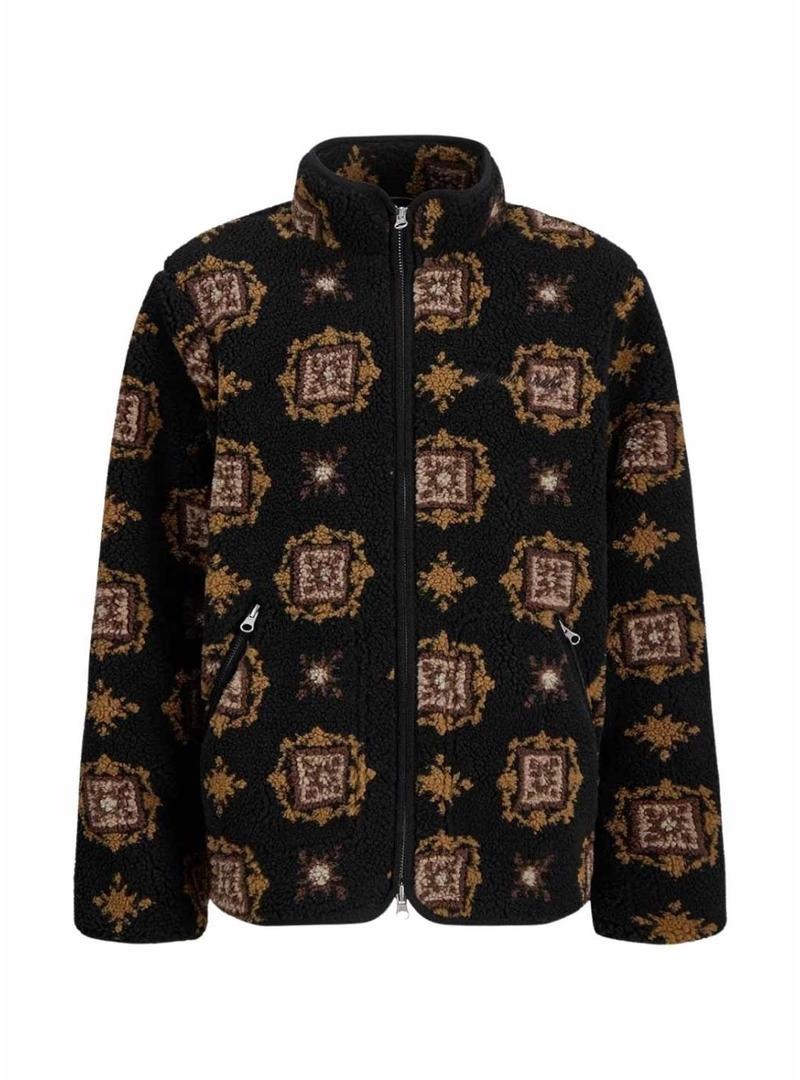 Jaqueta Jack and Jones. Modelo Norrebro. Cor preto. Estampa étnica em tons de caramelo. Fecho com zíper. Gola alta. Bolsos laterais. Tecido de pelúcia. Ajuste folgado.