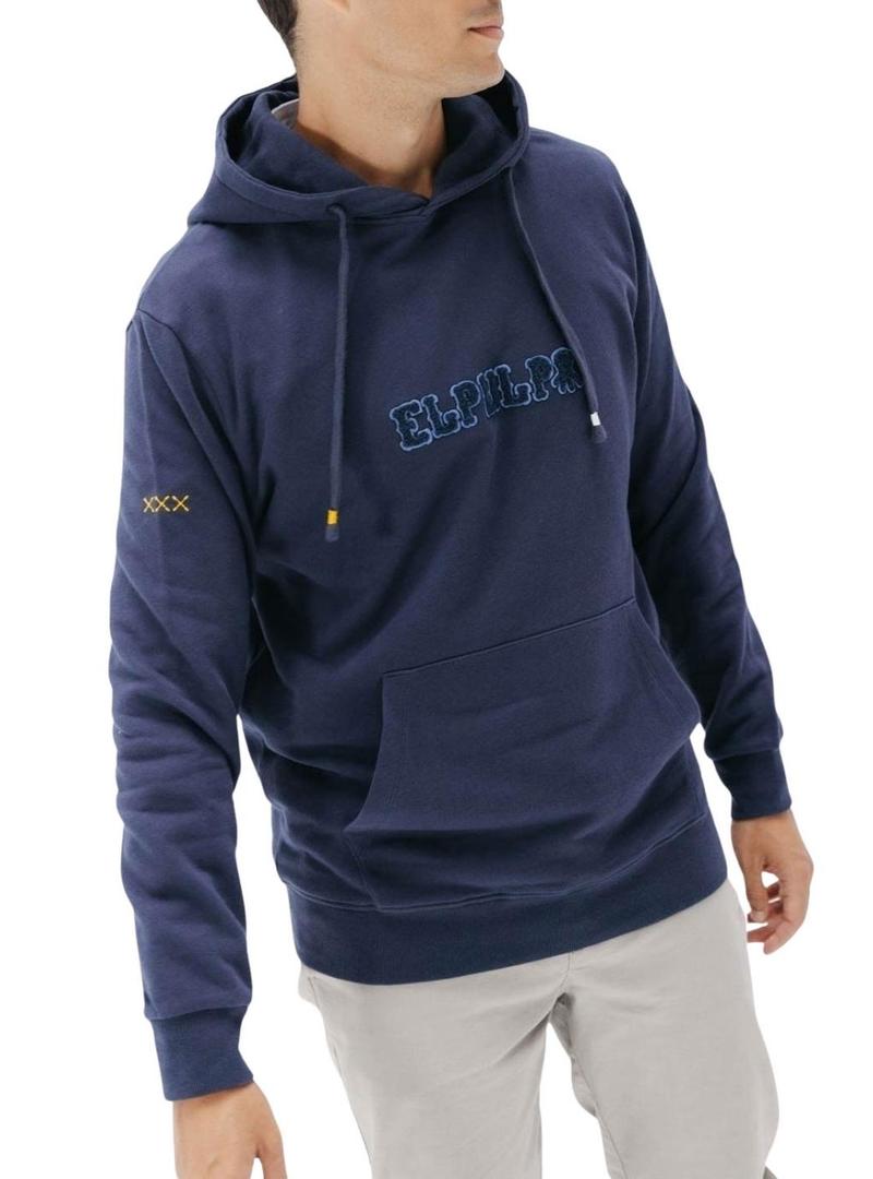 Moletom El Pulpo com capuz bordado heritage azul marinho para homem.