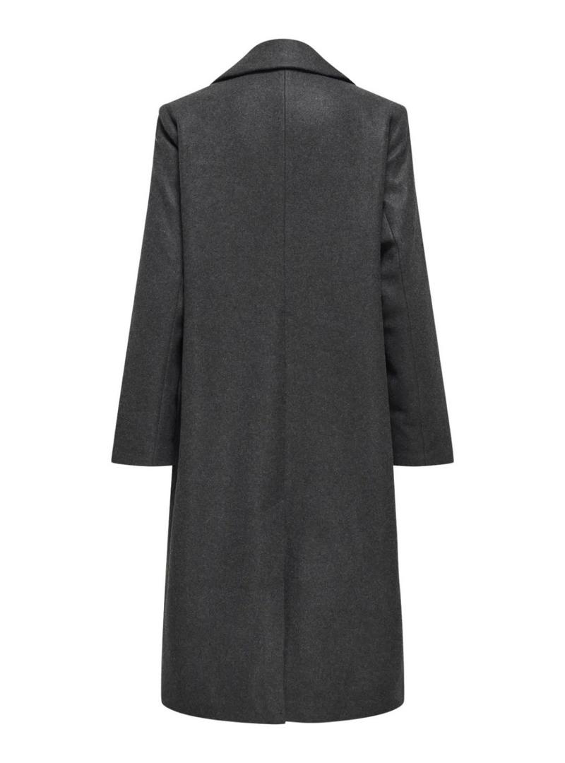 Casaco Only. Modelo Lisa. Cor cinza. Fechamento com três botões. Corte reto. Ajuste folgado. Cor cinza escuro. Estilo básico. Bolsos laterais. Abertura traseira. Corte longo.