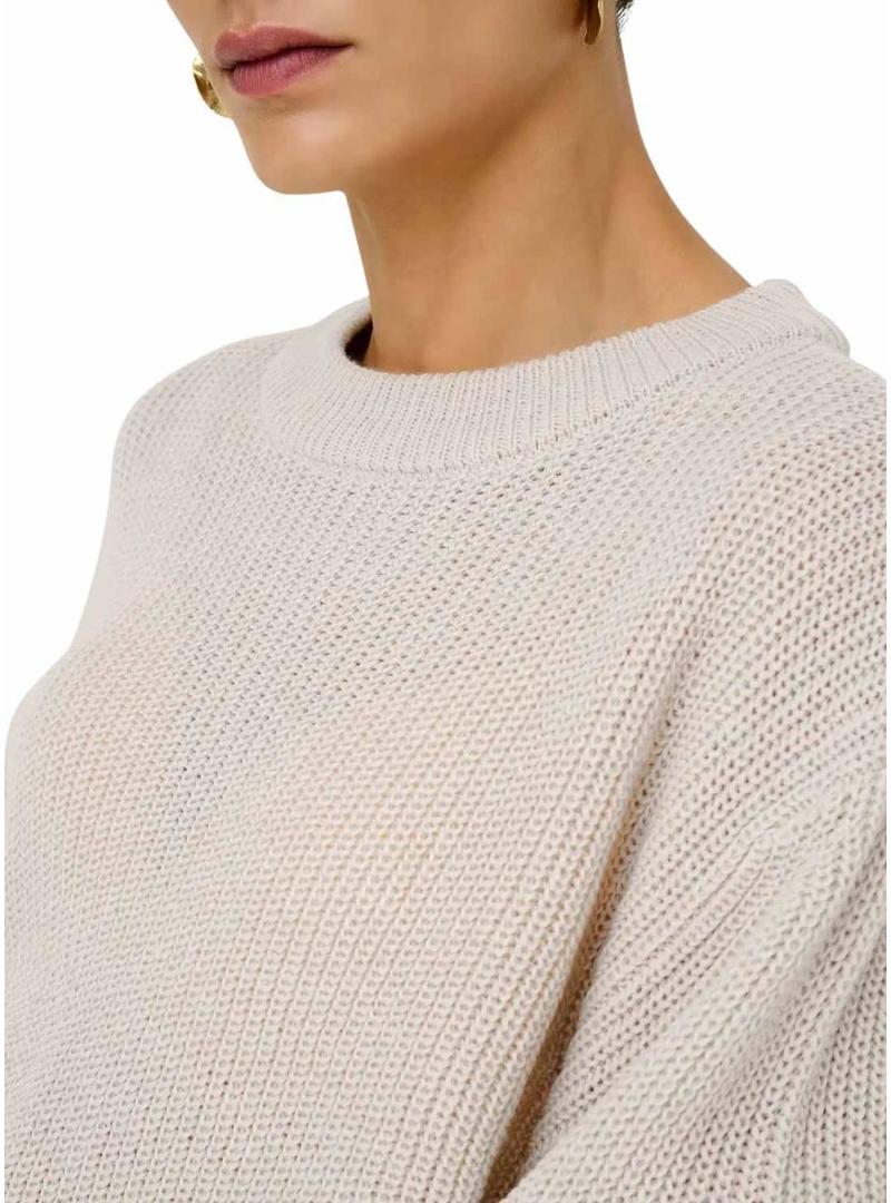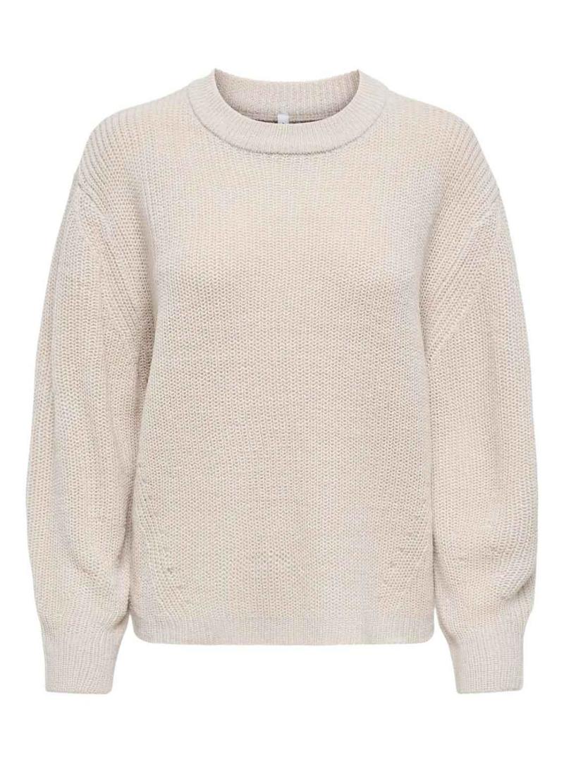 Camisola Only. Modelo Milouz. Cor bege. Gola redonda. Manga comprida. Ajuste reto. Tecido de malha grosso em relevo. Ombros caídos. Estilo básico.