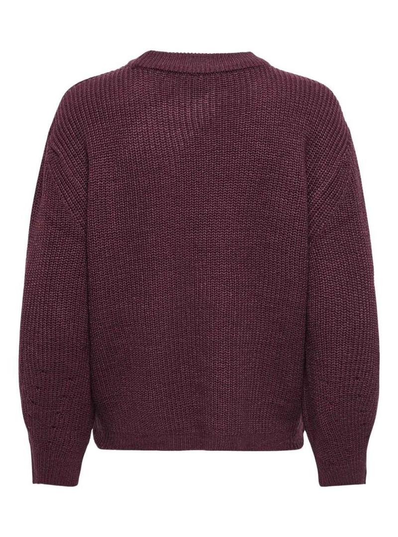 Camisola Only. Modelo Milouz. Cor granada. Gola redonda. Manga comprida. Ajuste reto. Tecido de malha grosso em relevo. Ombros caídos. Estilo básico.