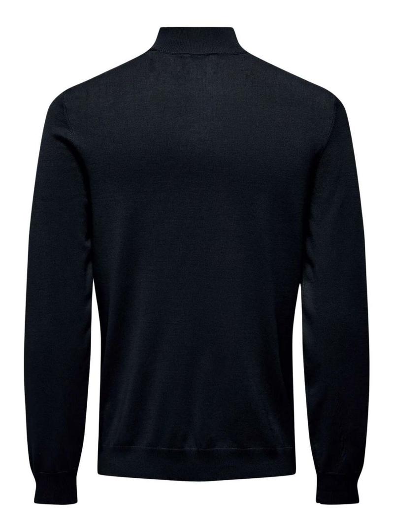 Camisola Only and Sons. Modelo Wyler Half Zip. Cor azul marinho. Gola alta com meio zíper. Extremidades caneladas. Ajuste regular. Tecido de malha macia. Estilo básico.