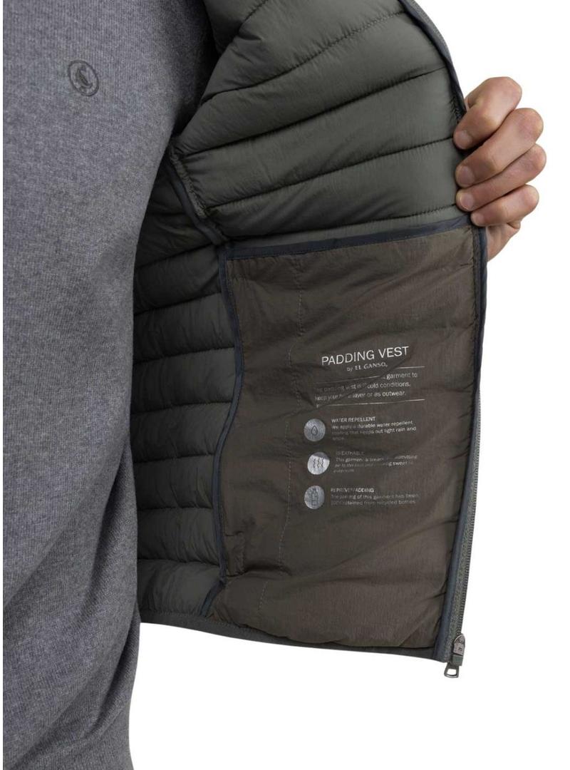 Colete acolchoado El Ganso. Modelo básico. Cor verde. Gola alta. Fecho com zíper. Logo circular no peito. Tecido acolchoado leve resistente à água. Bolsos laterais. Axila elástica.