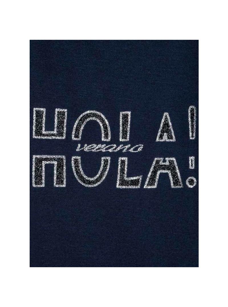 Sweat Mayoral para Menina. Cor Azul Marinho. Manga comprida. Pescoço redondo. Cintura elástica e punhos. Baixo assimétrico. Aberturas laterais na parte inferior. Impressão frontal com strass.